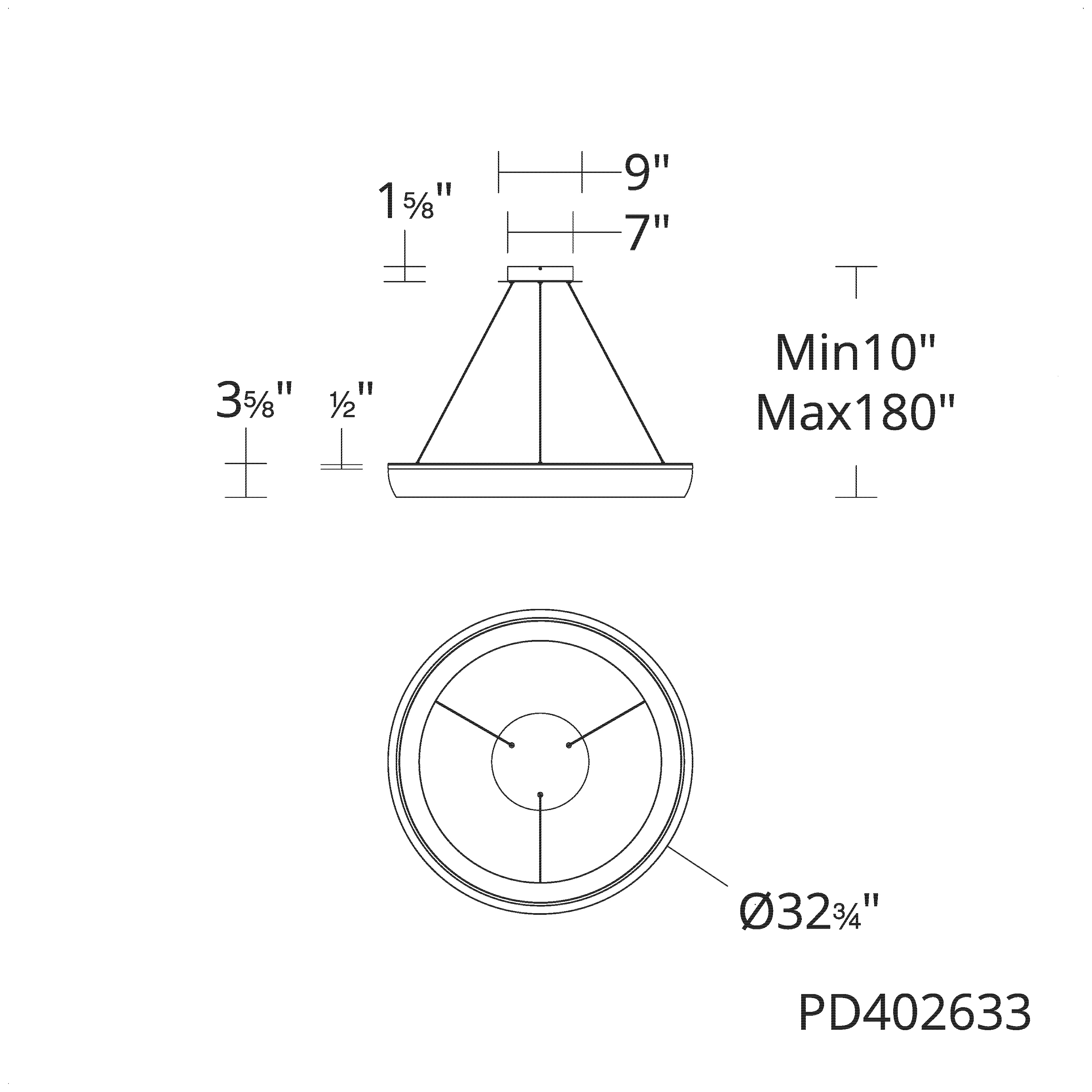 | PD402633 - 33" | 2700K/3000K/3500K/4000K | BC - Black Chrome | 51W | 3738 | 3184 |